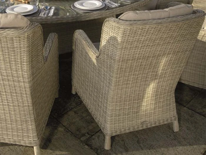 - Crafted from lightweight, maintenance-free outdoor rattan in Sandstone