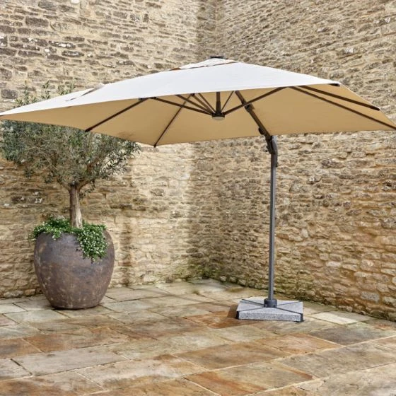 Bramblecrest Chichester 3x3m Square Side Post Parasol Sand With 100kg Granite Base