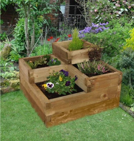 - The Forest Caledonian Tiered Raised Bed is perfect for use as a floral display with the differing heights
