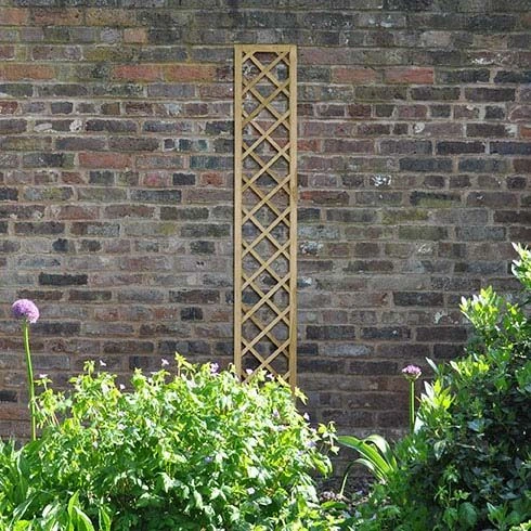The lattice features substantial 8mm thick battens (20mm wide) which are smooth-planed and rounded, overlaid and mounted in a substantial rebated perimeter frame which is also smooth-planed. The battens on the Hidcote Lattice are spaced 90mm apart which makes it ideal for use as a frame for climbing plants that need wider gaps such as climbing roses.