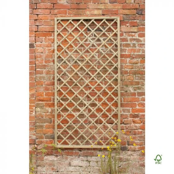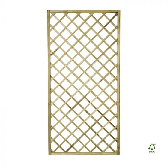 The lattice features substantial 8mm thick battens (20mm wide) which are smooth-planed and rounded, overlaid and mounted in a substantial rebated perimeter frame which is also smooth-planed. The battens on the Hidcote Lattice are spaced 90mm apart which makes it ideal for use as a frame for climbing plants that need wider gaps such as climbing roses.