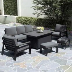 Kettler Palma Mini Corner Seating With Firepit Table (Whitewash With Grey Taupe Cushions)