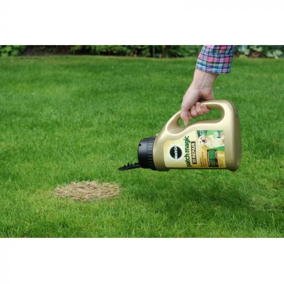 - Based on UK’s number one grass seed Miracle-Gro Patch Magic Dog Spot Repair is the easy-to-use one-step solution to the problem. It is convenient to use and fast acting so you can repair the toughest lawn bare patches quickly and easily.