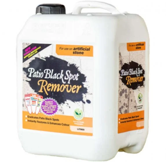 Patio Black Spot Remover for use on Artificial Stone is the only product currently manufactured to specifically and successfully remove ‘patio black spots and white spots’ that ruin the appearance of your pre-cast garden stonework.