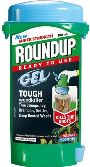 The tough roundup gel weedkiller is a garden weed and stump killer for use on unwanted vegetation like brambles, nettles and thistles.Tough roundup weedkiller gel prevents stump re-growth but does not accelerate stump degradation, this process continues at natural speed.
