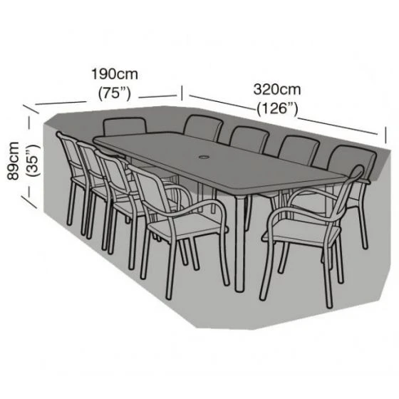 Premium polyester cover for a 8-10 Seater Rectangular Furniture Set.